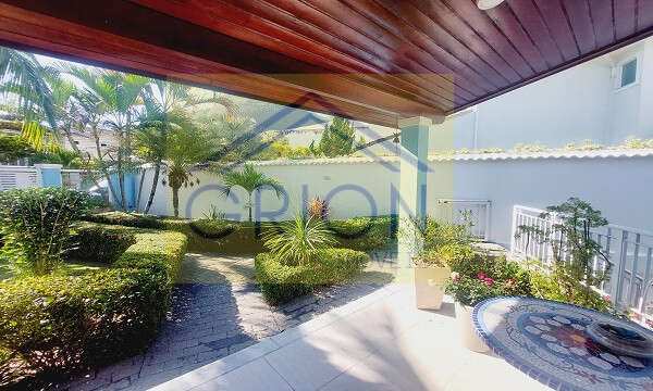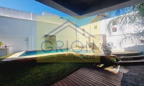 Excelente casa linear com 336m2 em centro de terreno, vaga para 6 carros, com lindo jardim na entrada da casa. Composta por: sala ampla em dois ambientes, jardim de inverno, lavabo, banheiro social com box blindex e armário, 4 quartos sendo 2 suítes e em uma com closet e hidro, copa cozinha planejada, lavanderia. Casa sob pilotis, embaixo uma ampla área com aproximadamente 100m 2 com 4 caixas d''agua de 3.000 litros. Fundos com excelente área de lazer com salão de festas, cozinha, piscina, churrasqueira e banheiros masculino e feminino. Acabamentos: banheiros com ventilação natural, decorados, Condomínio com lago, quadra, parquinho, vaga para visitantes e vasta área verde. Aceitando financiamento.